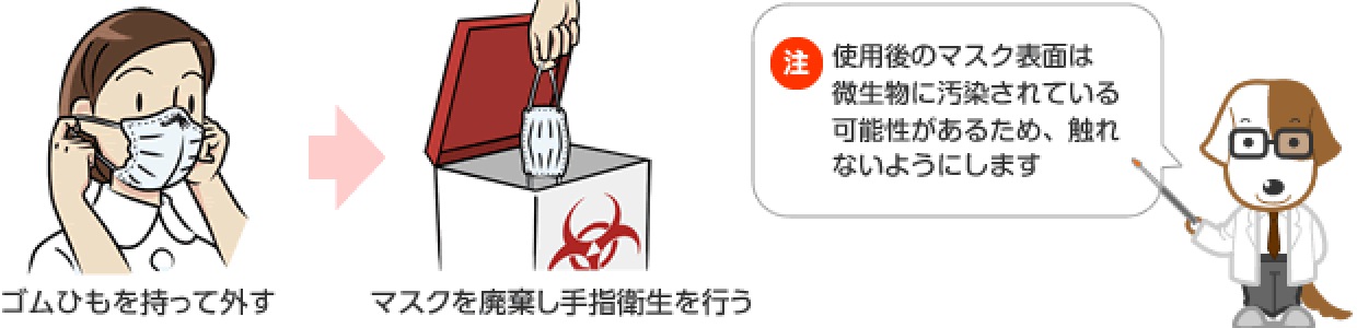 ここではマスクの適切な着脱方法について紹介します。