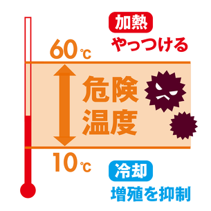 多くの細菌は10~60℃で増殖するため、一般的にこの温度帯は「危険温度帯」と呼ばれます。