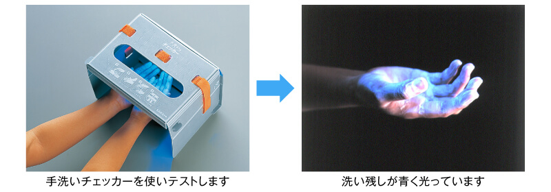 手洗いの検証には様々な方法がありますが、簡単に視覚的な検証ができる「手洗いチェッカー」がおすすめです。