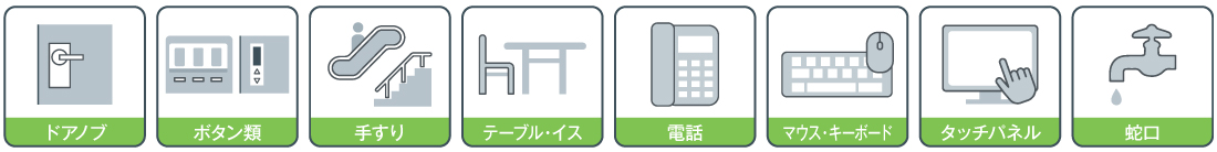 通常の汚れを除去する清掃に、特に人の手がよく触れる箇所を中心とした除菌作業を取り入れましょう。