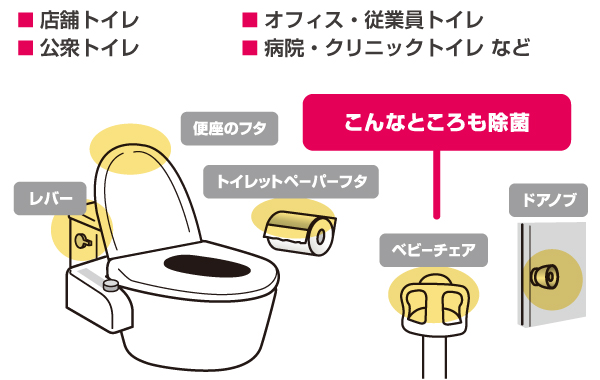 さらにトイレ内には無意識に手が触れやすい個所が多く、手が汚染される可能性も高くなります。